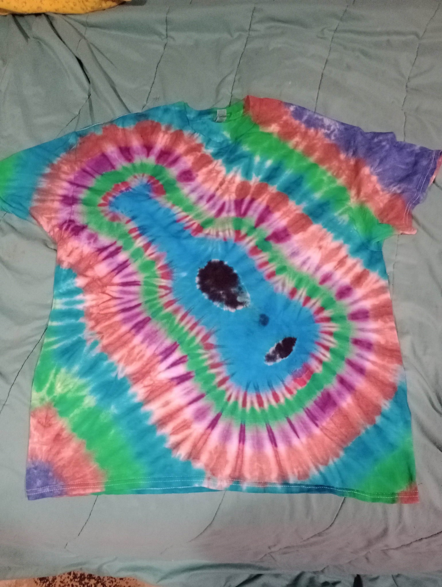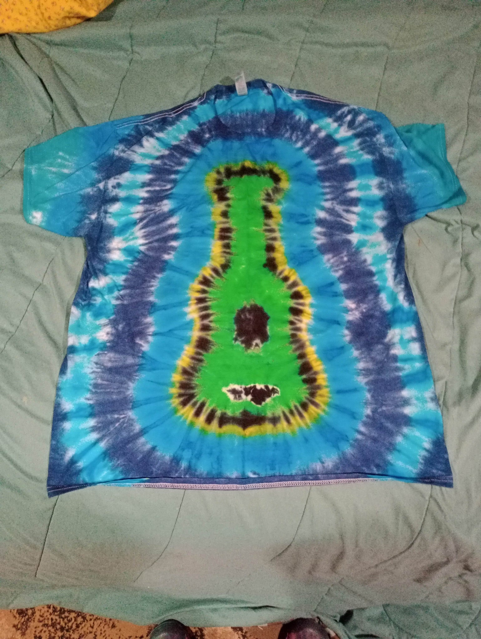 Get your rock on with this tie dye guitar shirt. 100% cotton shirt.